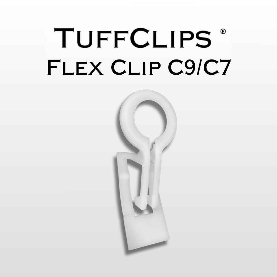 The new patented FLEX CLIP allows you to slide the clip over the bulb when the light bulb is already in the socket. This allows you to pre bulb your displays, pre bulb on site. The Flex Clip makes for an easy transition for lights in the socket lines. It has a 360-degree rotating fastener which eliminates the hassle of power direction during installation. The living hinge allows the clip to adhere to shingles as well as gutters. The FLEX CLIP is truly a one stop solution for your clip needs. It dramatically decreases the removal time on a jobsite, and leaves no clip left behind.